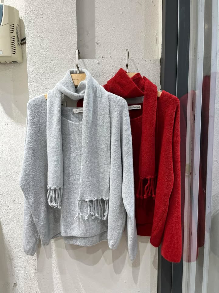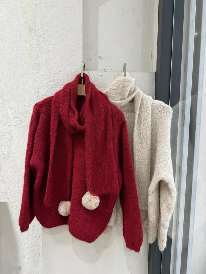 熱賣中🔥 即將售完76混針織毛衣+球球圍巾SET