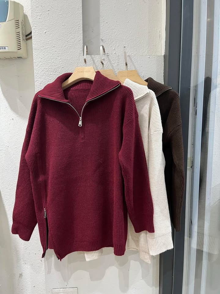 熱賣中🔥 即將售完80翻領側拉鍊毛衣(紅)