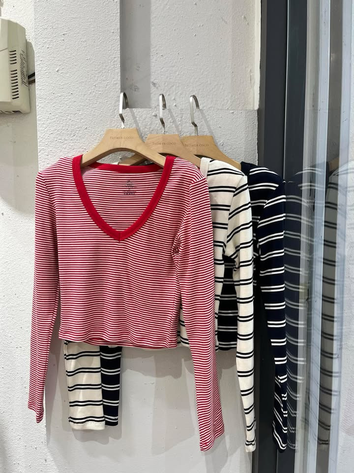 熱賣中🔥 即將售完94V領挺棉撞色領條紋上衣