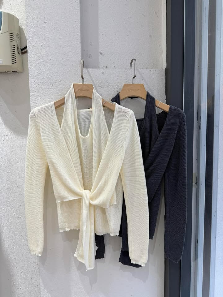 熱賣中🔥 即將售完85V領混針毛衣+圍巾SET