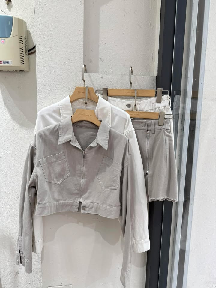 熱賣中🔥 即將售完178斜口袋丹寧外+拉鍊褲裙SET