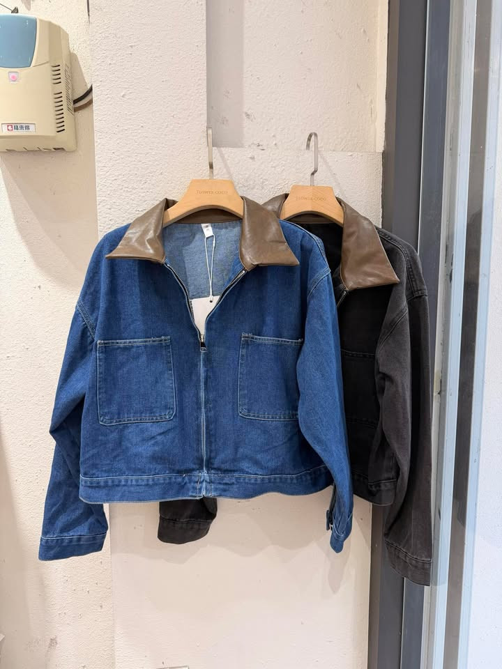 熱賣中🔥 即將售完188皮質有領配色牛仔外套(藍)