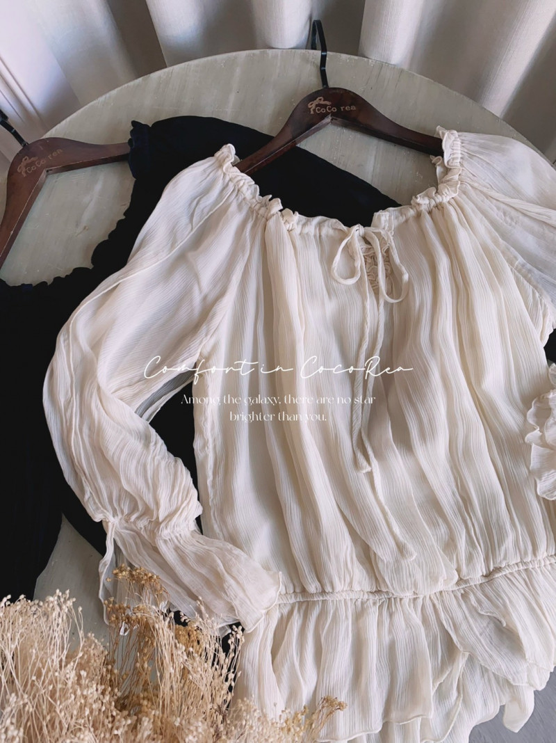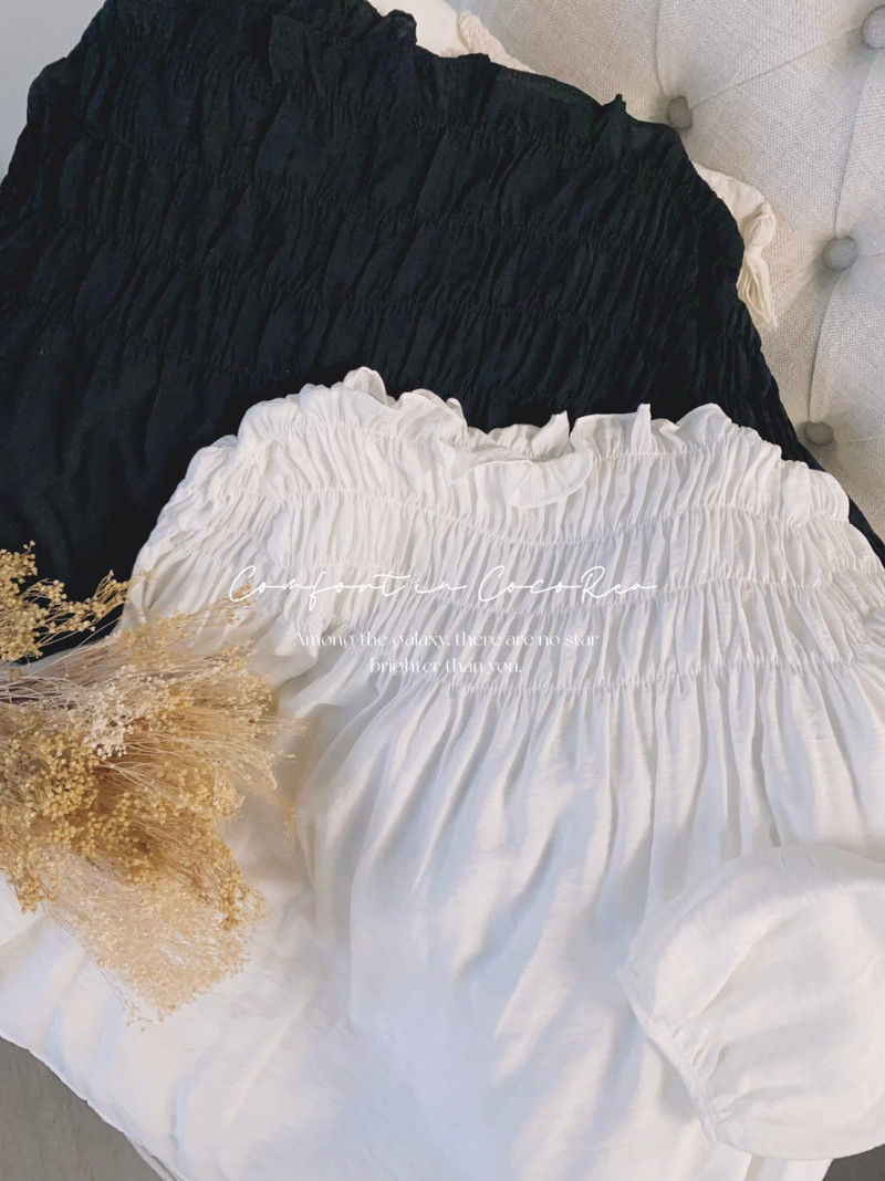 熱賣中🔥 即將售完A34標 預購 領口抓皺可多穿式彈性雪紡上衣 黑/白 胸不限 長62 連線價1280喜歡+1帶哪裡取(A嘉義取B台中取C郵寄)