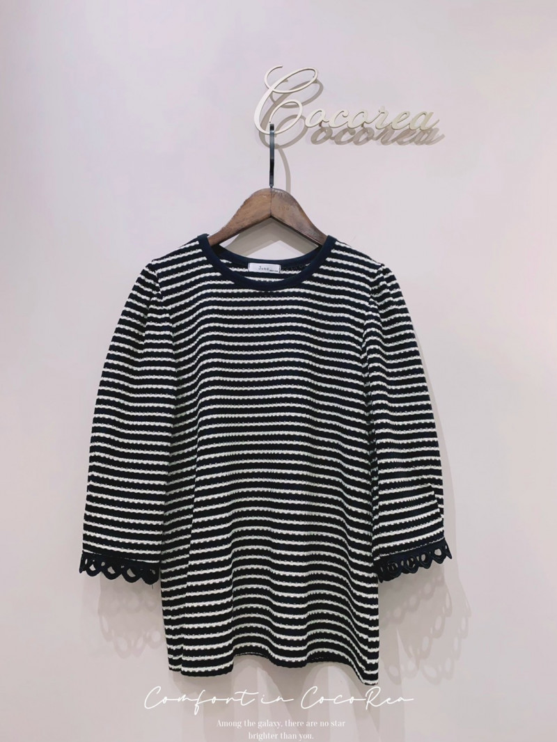 熱賣中🔥 即將售完A33標 預購 手袖圈圈蕾絲橫條上衣 F胸100/L胸110 長60 限量各15件連線價999喜歡+1帶哪裡取(A嘉義取B台中取C郵寄)