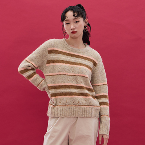 熱賣中🔥 即將售完【E-WEAR】啟動樹懶模示刺繡圖騰條紋針織上衣 - 兩色