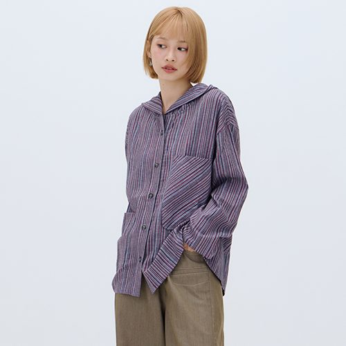 熱賣中🔥 即將售完【E-WEAR】色彩感細紋連帽造型襯衫 - 兩色