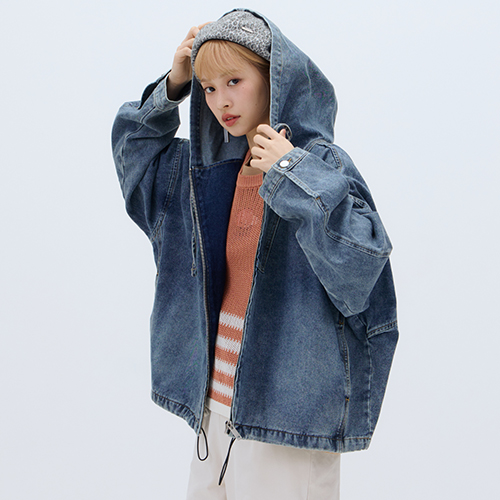 熱賣中🔥 即將售完【E JEANS】渲染洗色效果連帽造型牛仔外套