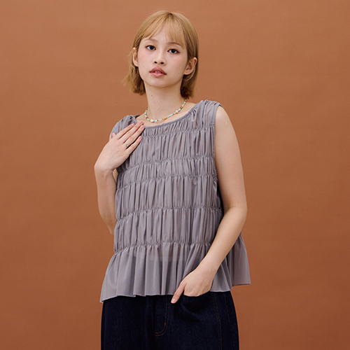 熱賣中🔥 即將售完【E-WEAR】全抓褶造型透膚背心 - 兩色