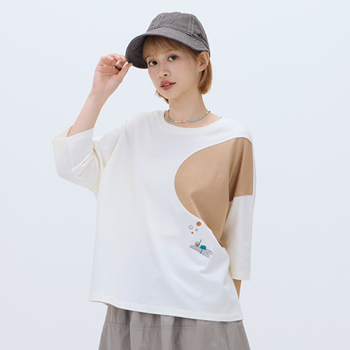 熱賣中🔥 即將售完【E-WEAR】單邊拼接三角蓋片造型短袖純棉外套 - 三色
