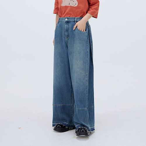 熱賣中🔥 即將售完【E JEANS】雙側活褶造型牛仔寬褲