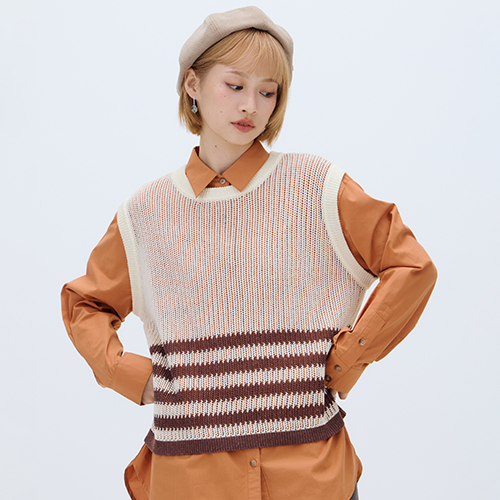 熱賣中🔥 即將售完【E-WEAR】條紋鏤空感織紋造型針織背心 - 兩色
