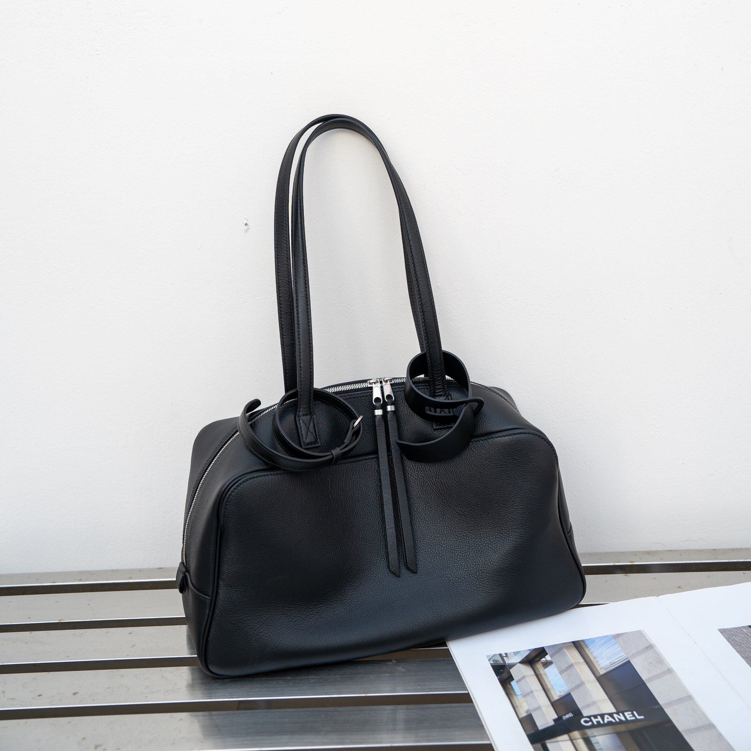 Hot Selling🔥 Almost Sold OutAR461-the row同款原版全粒面头层自然摔牛皮包包 黑 A8732(小号)