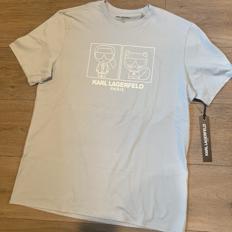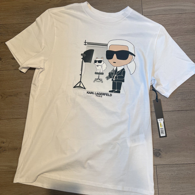 熱賣中🔥 即將售完第1標 LM5G2118 Karl Lagerfeld巴黎男款卡爾與貓咪喬瑟特肖像T恤(版型偏大) $999